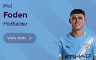梅开二度,福登当选曼城vs利兹联全场最佳球员